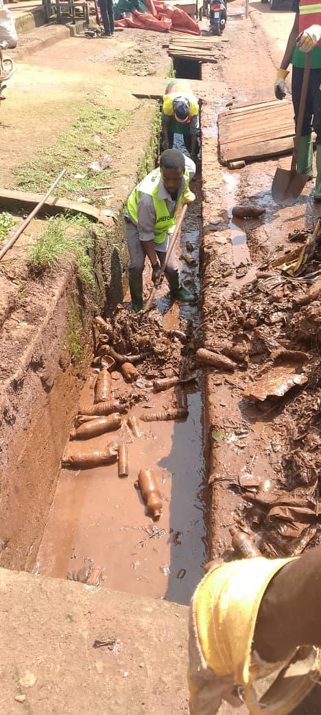 Ce jeudi, les volontaires HIMO ont été déployés au marché « A », au niveau du sens interdit, pour procéder au curage des caniveaux. Cette opération, essentielle à la gestion urbaine, a pour objectifs :