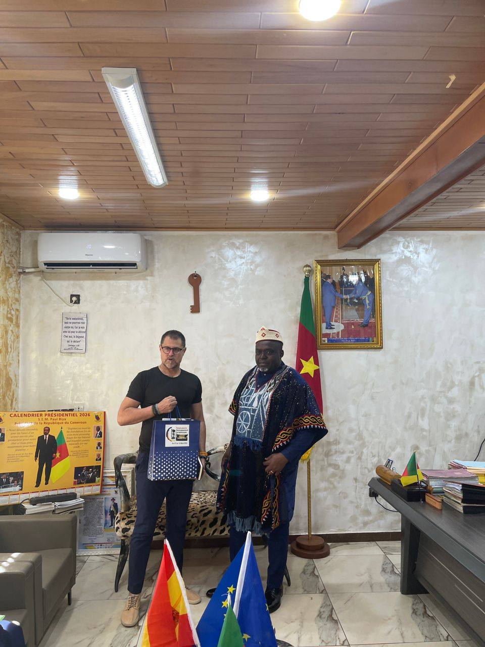 Dans une ambiance conviviale et constructive, les échanges ont porté sur le renforcement des relations bilatérales et l’identification d’opportunités de collaboration dans plusieurs domaines stratégiques, notamment la formation, la culture, le développement économique et la coopération décentralisée. L’objectif commun est de valoriser les potentialités locales et de créer des synergies durables entre Bafoussam et des partenaires espagnols.